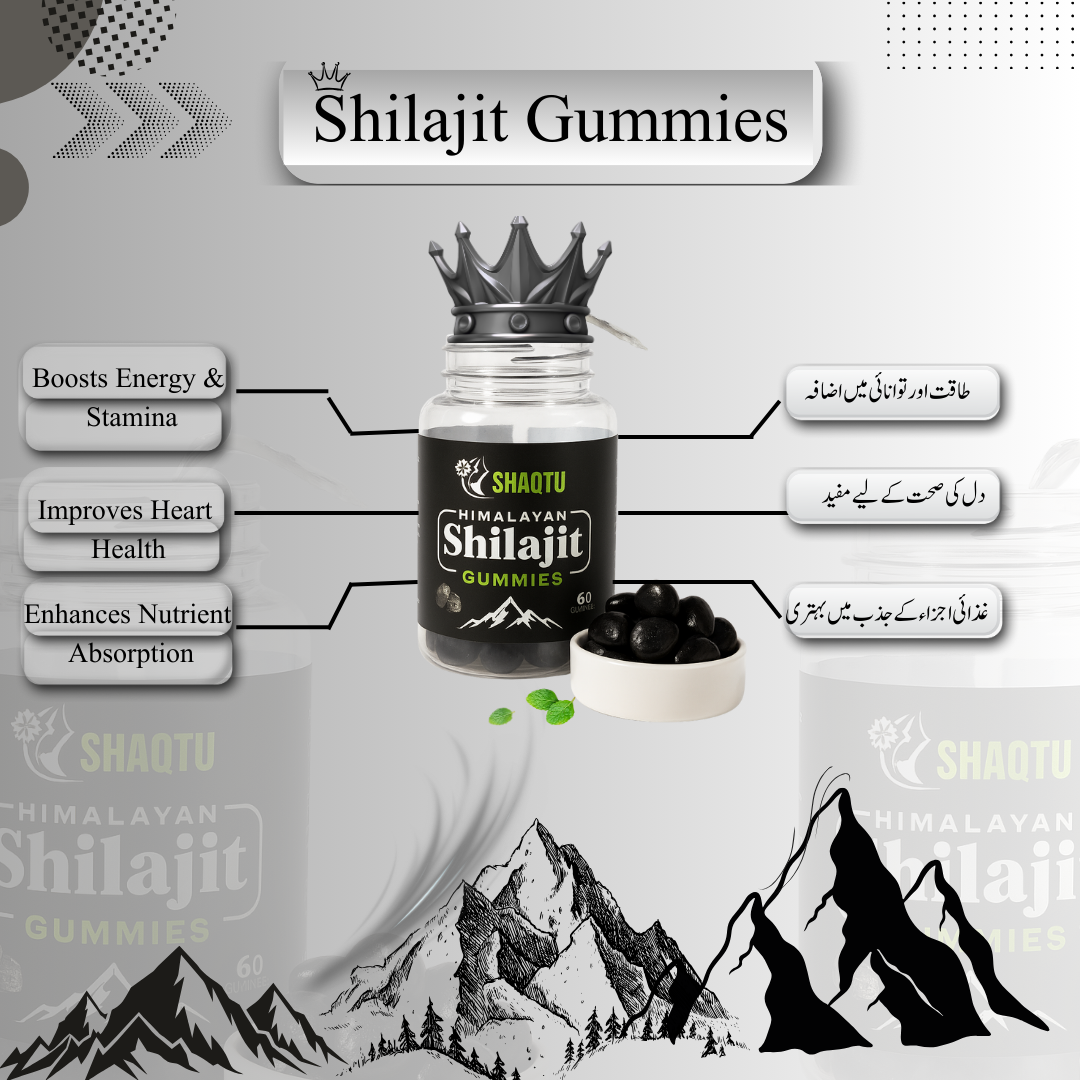 قدرتی توانائی بڑھانے والی گمز، جو صاف شدہ شلاجیت سے تیار کی گئی ہیں تاکہ آپ کی طاقت، برداشت اور مجموعی صحت کی حمایت کریں۔